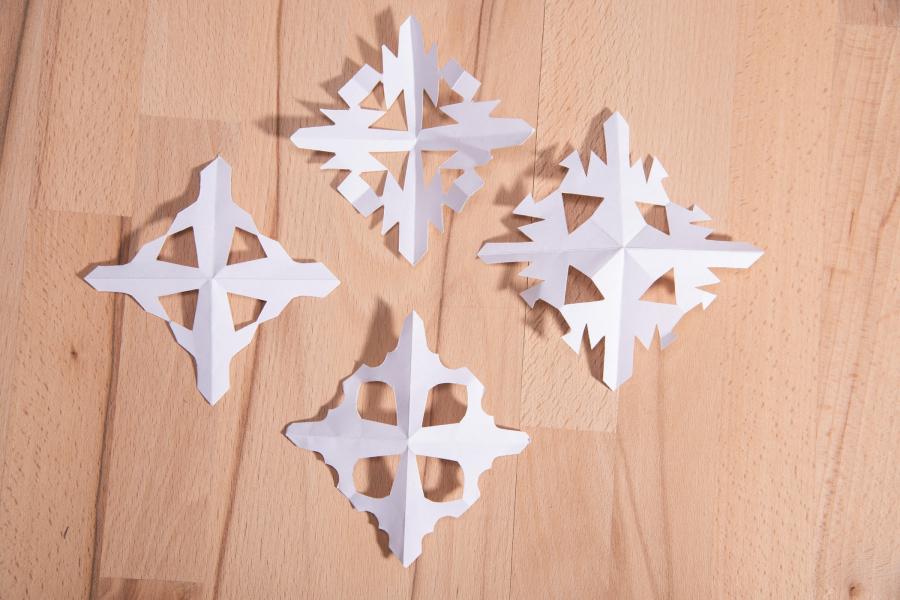 A borongós, hosszú téli estéken különösen jól esik, ha szép, világos mintákkal díszítjük lakásunkat. Erre egy remek megoldás, ha papírból hópihéket készítünk, amiket kiragaszthatunk az ablakra, szekrényekre, vagy akár a függönykarnisról egy vékony cérnán vagy damilon le is lógathatunk az ablakok elé.